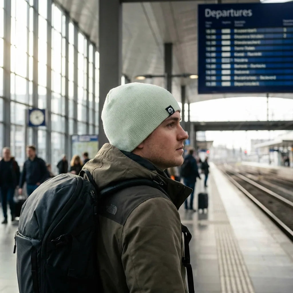 Beanie gorro invierno viajero estación aeropuerto bonoboss