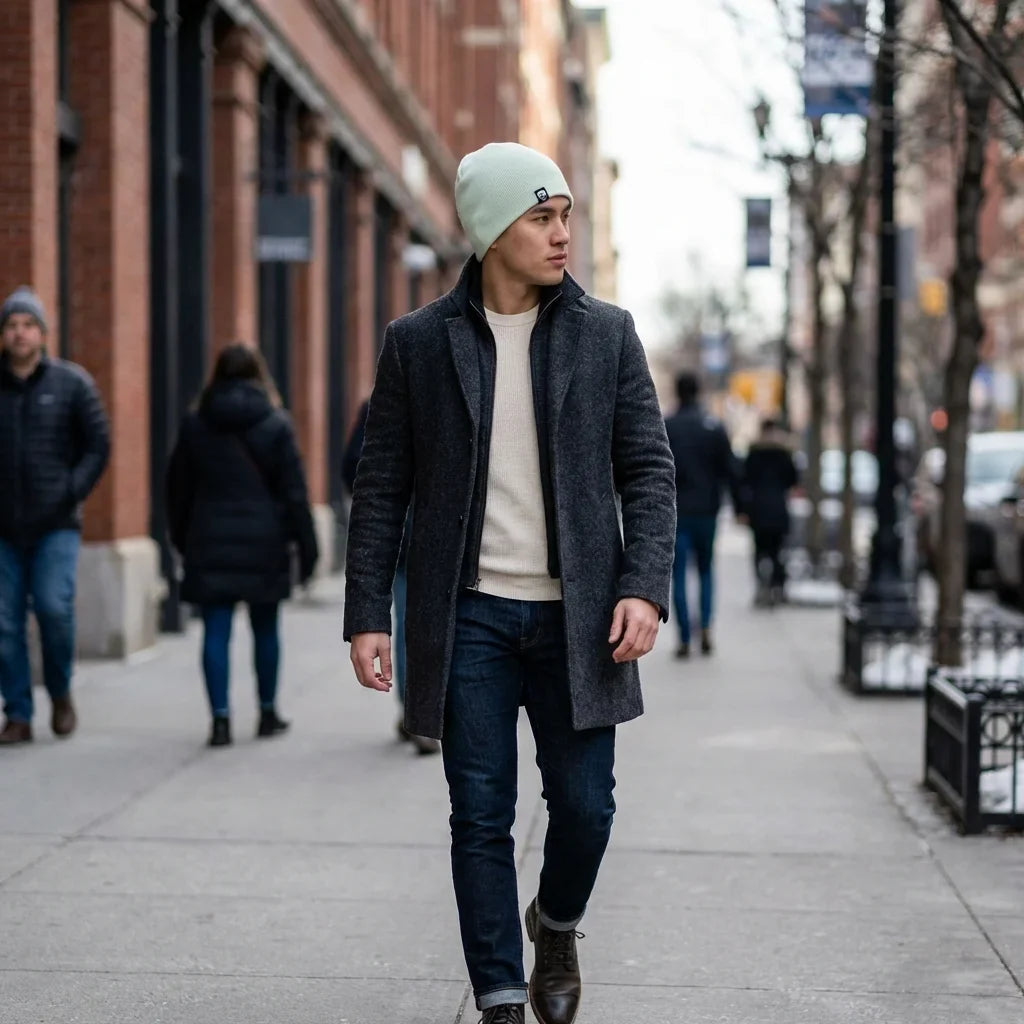 Beanie gorro invierno in calle urbana día invierno bonoboss