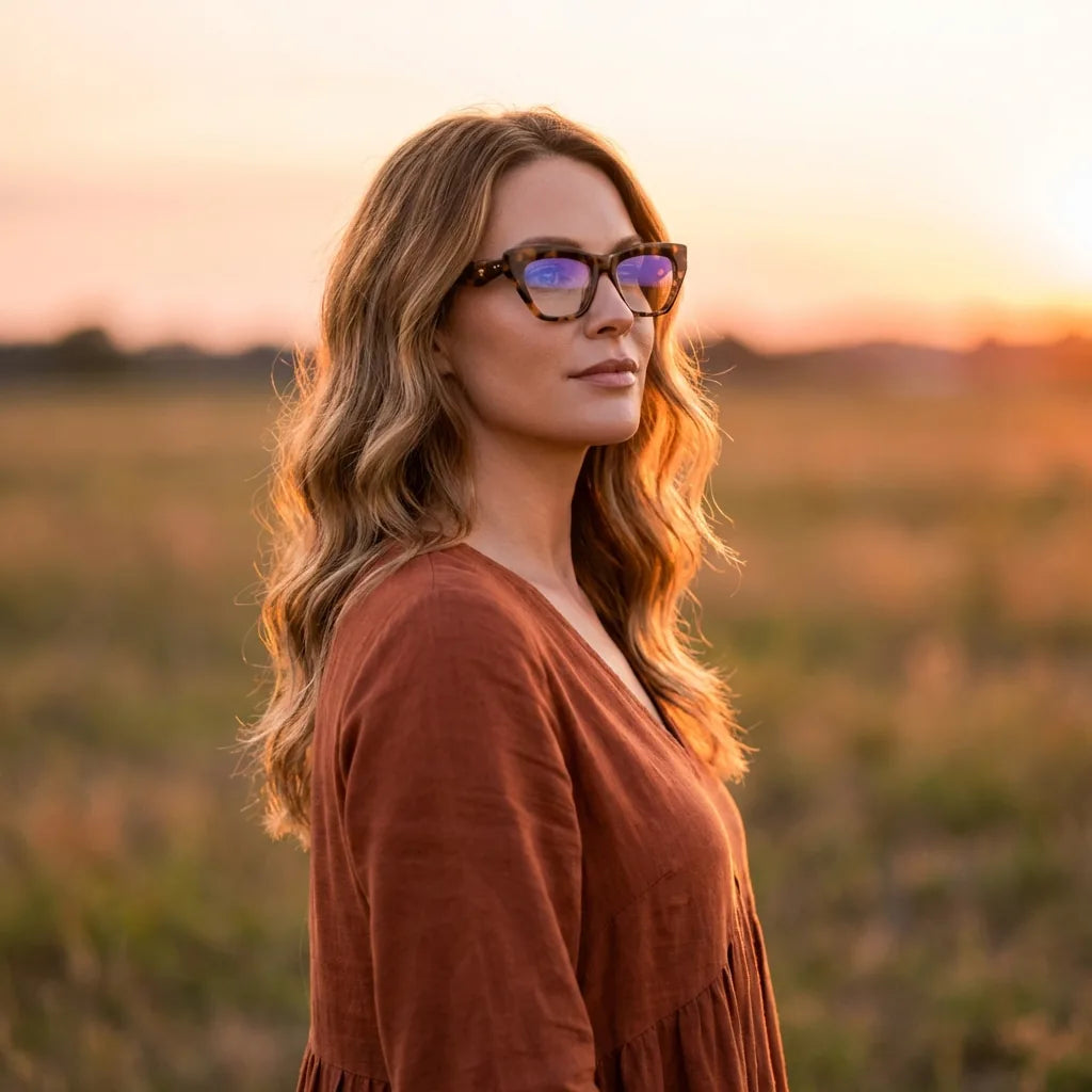 Lenses optical minerva tortoise women in luz dorada golden hour elegante bonoboss