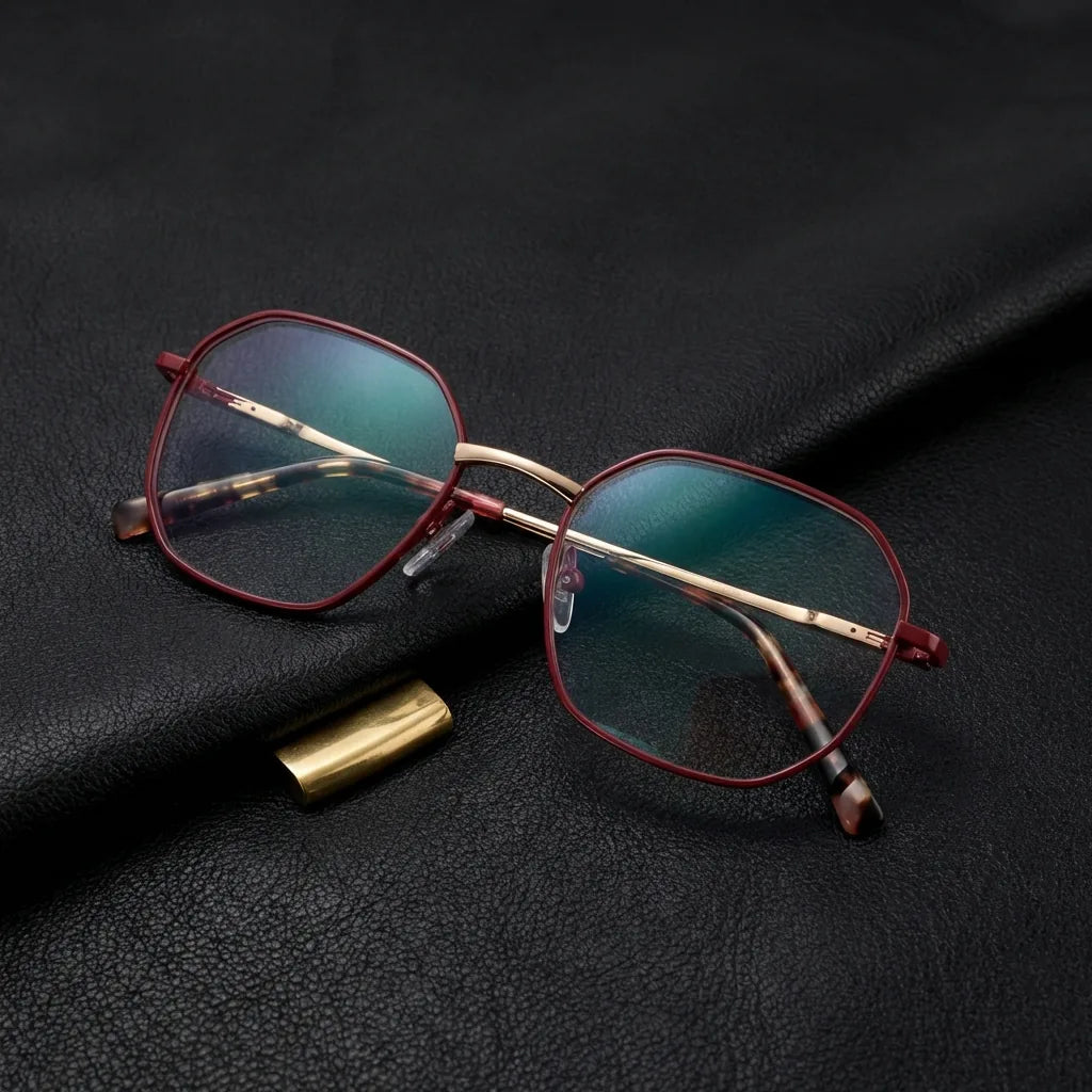 Lenses optical galapagos metal red sobre mármol white elegante frame premium bonoboss
