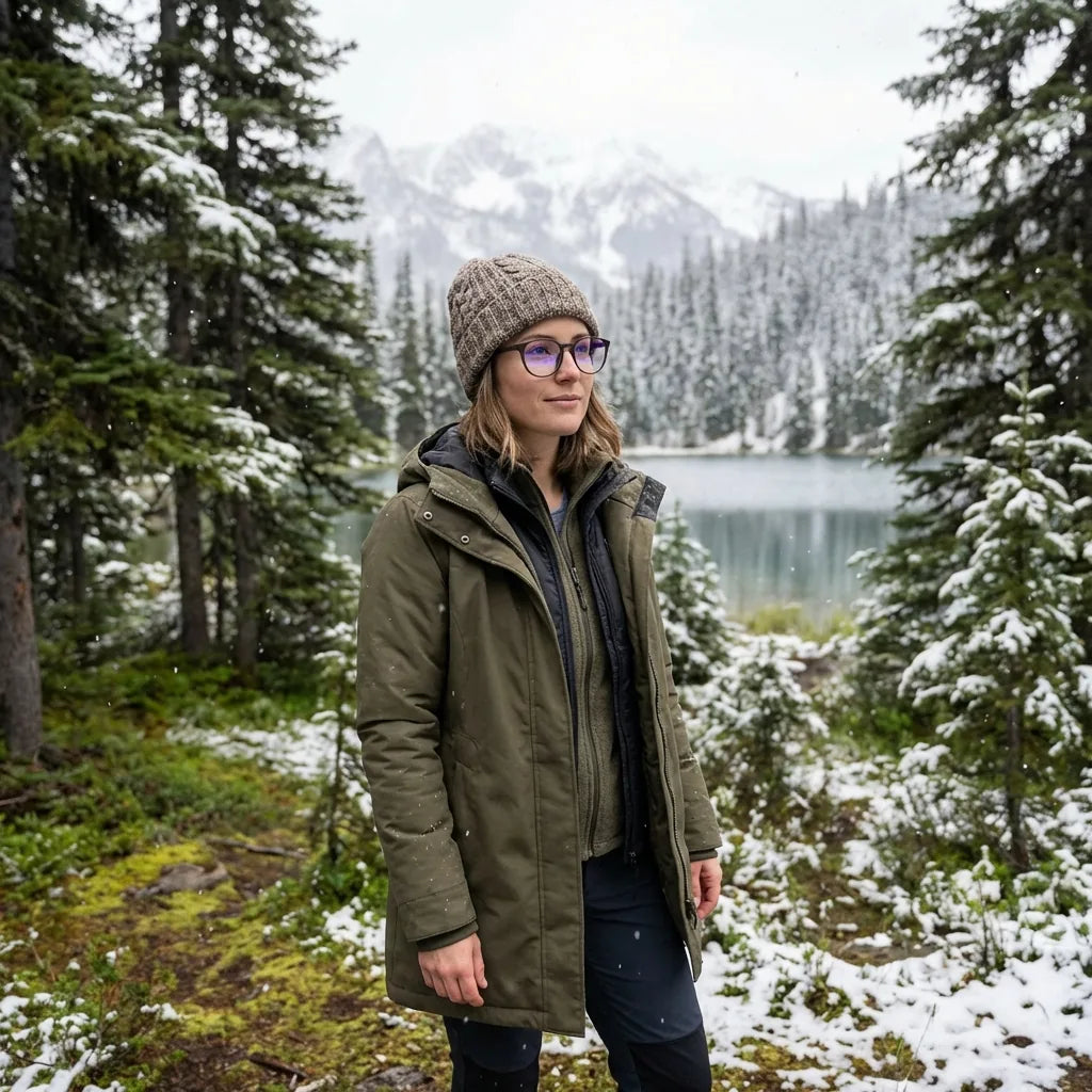 Lenses optical ashley brown modelo with gorro in bosque nevado invernal bonoboss