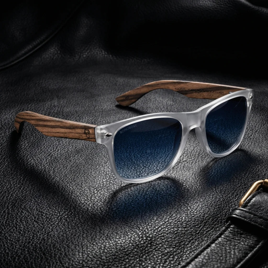 Men wearing lenses sun acacia wood zebrawood polarized clear gradient blue men in playa sun protection UV400 bonoboss