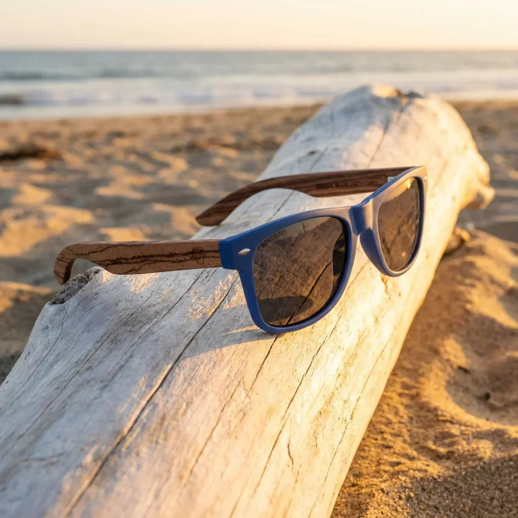 Lenses sun acacia polarized UV400 wood zebrawood blue smoke sobre golden driftwood coastal lens reflection bonoboss