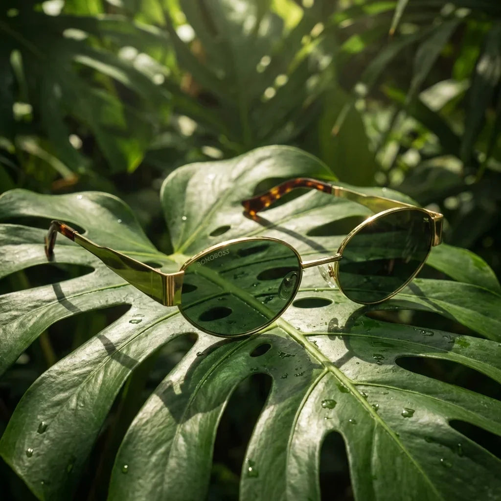 Lenses sun new lennon polarized bio-acetate brown botanical composition monstera tropical biodegradable bonoboss