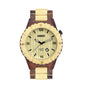 Ein kleines Juwel, ich könnte Ihnen nichts anderes sagen... eine imposante Herrenuhr in hellen Brauntönen aus natürlichem Ahorn und Schwarz, die durch ihr natürliches schwarzes Sandelholz verliehen werden.