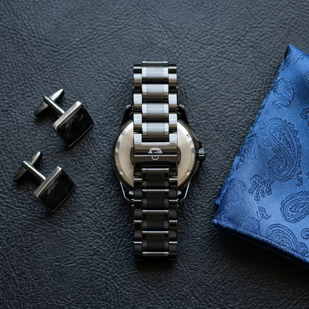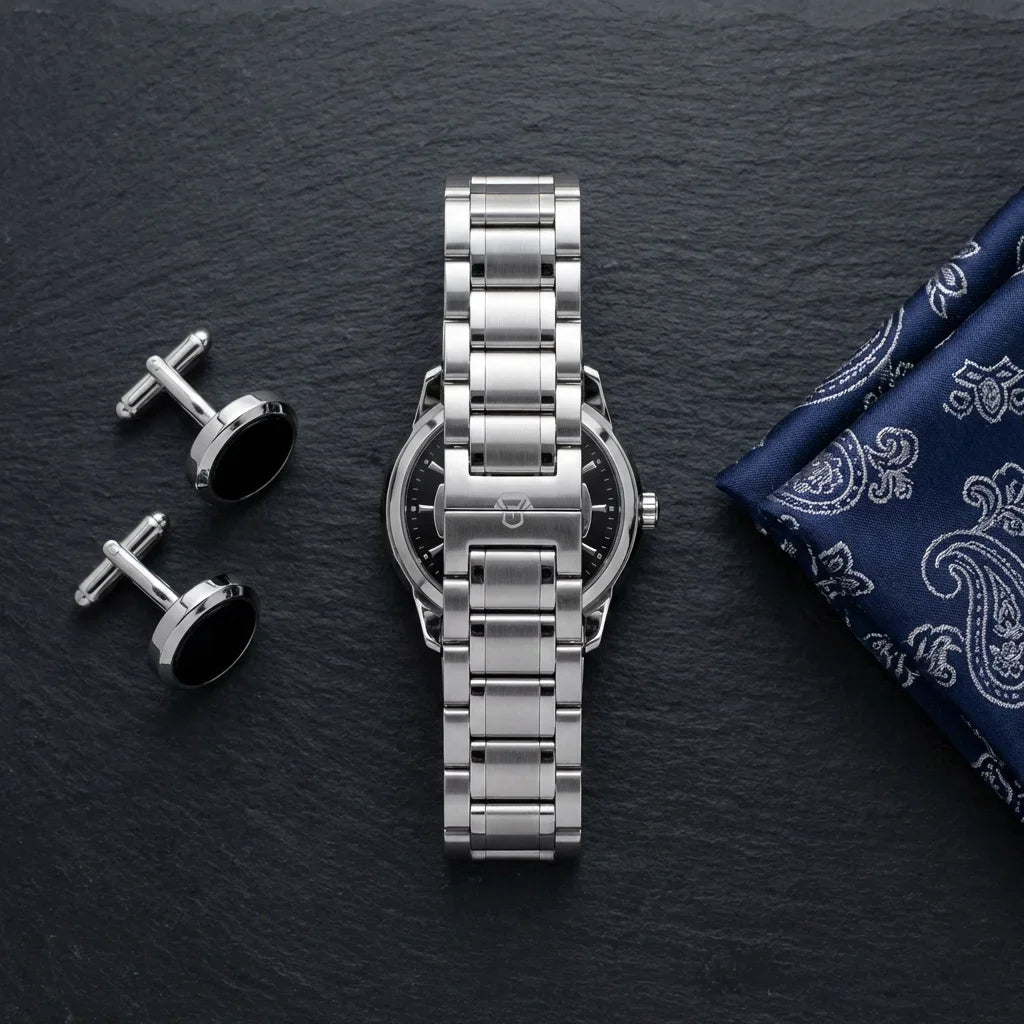 Correa stainless steel for reloj black flat lay luxury accesorios bonoboss