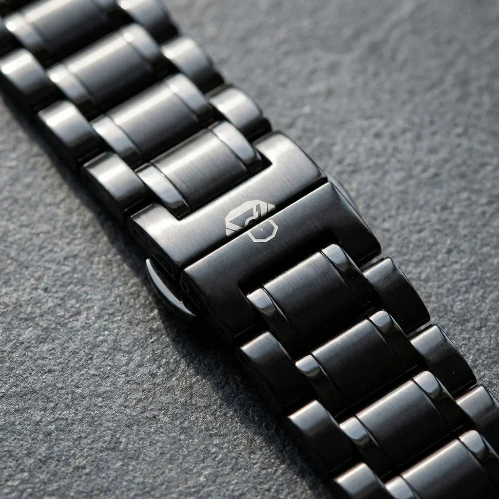 Correa stainless steel for reloj black detalle brillo luz natural macro bonoboss