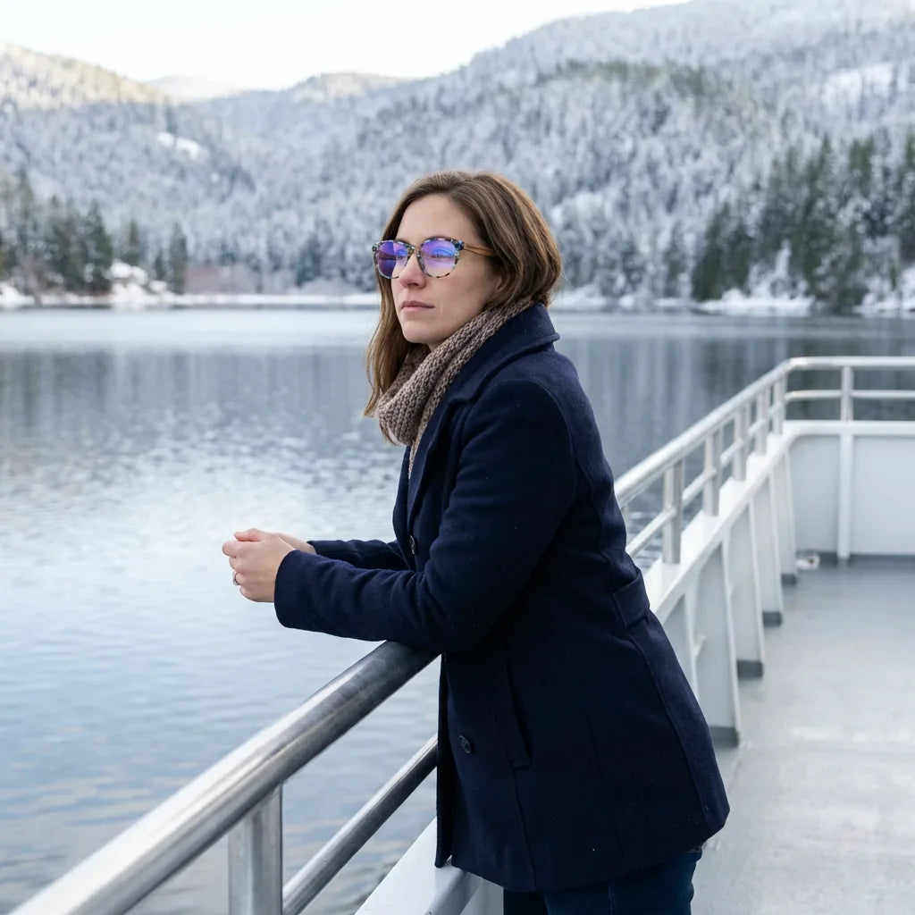 Lenses optical chiloe 111 blue modelo in barco lago with bosque nevado bonoboss