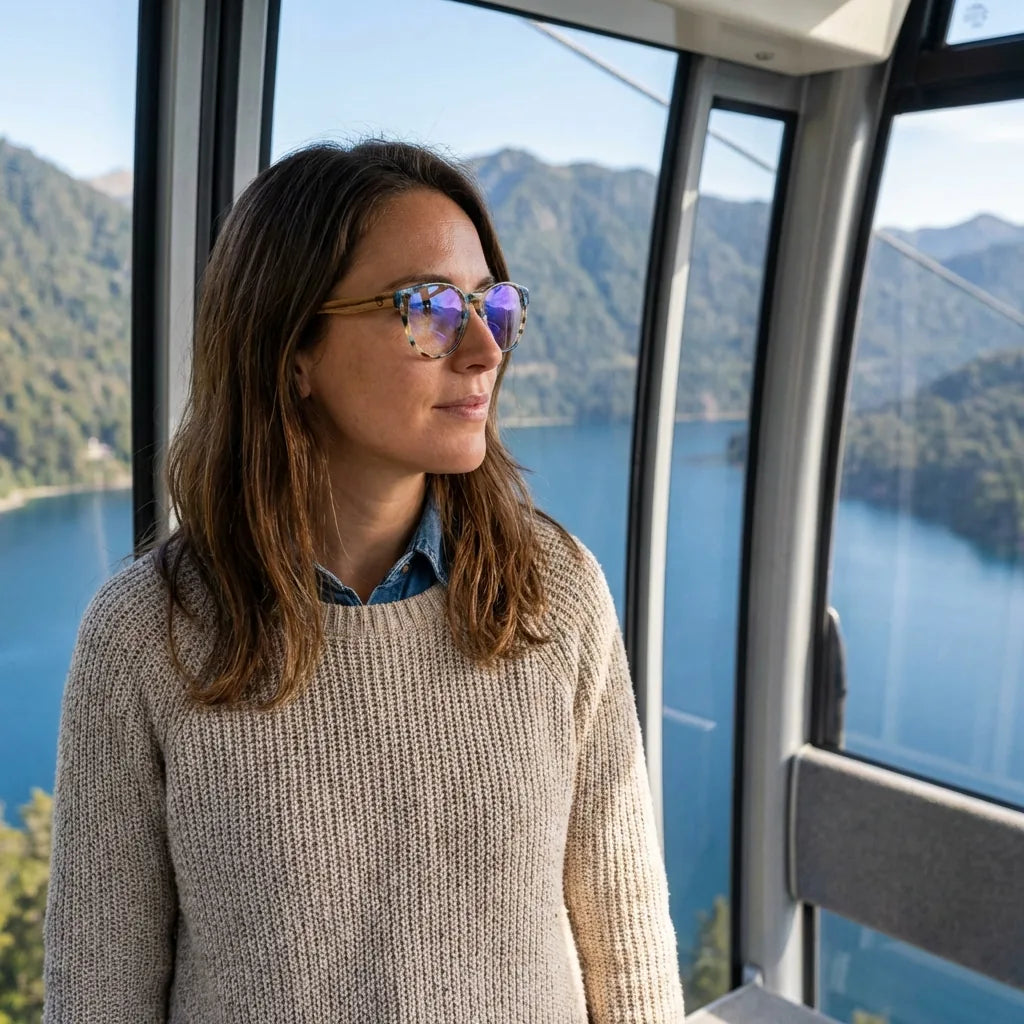 Lenses optical chiloe 111 blue modelo in teleférico with vista a lago bonoboss