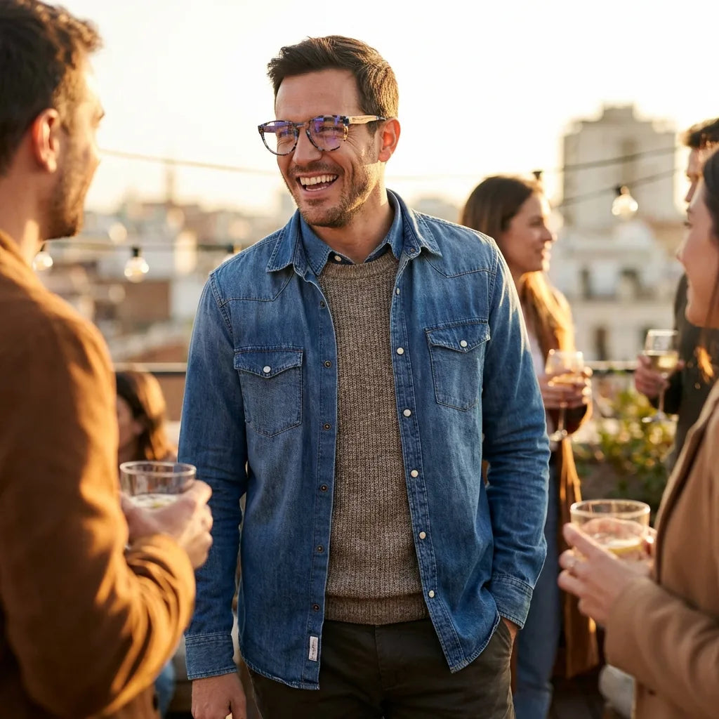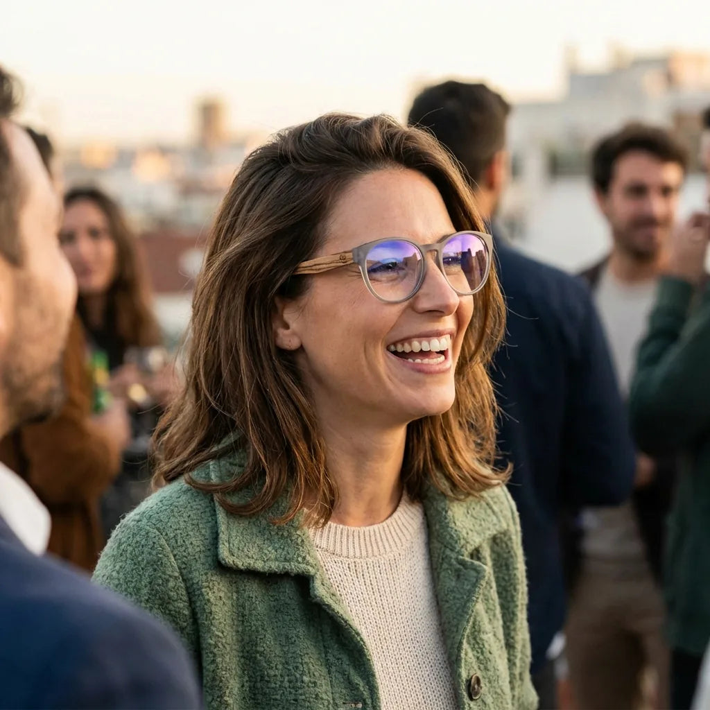 Lenses optical chiloe 111 blue modelo in contexto social urbano profesional bonoboss