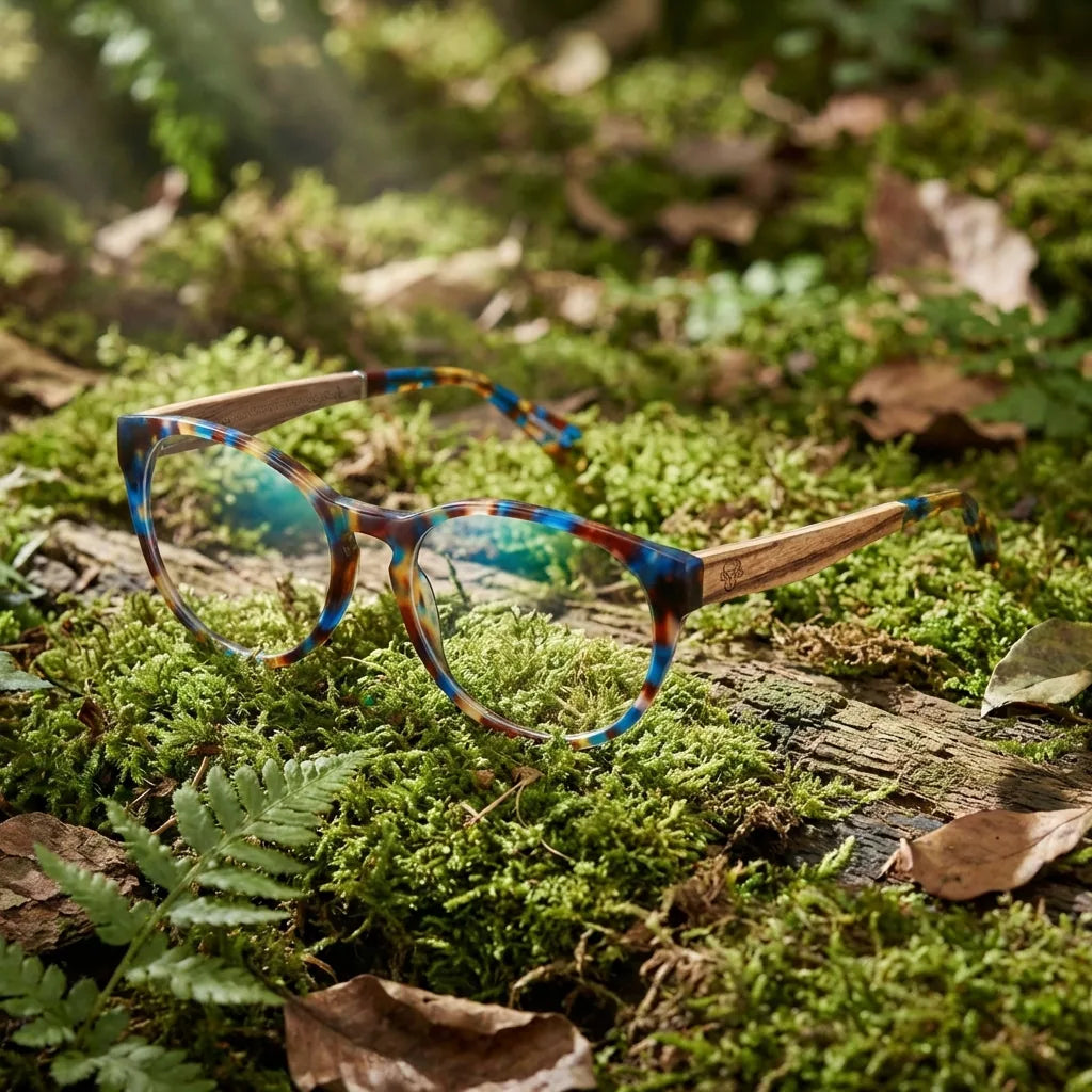 Die optischen Brillen von Chiloé vereinen die Inspiration der Natur mit der Langlebigkeit und Stärke von Schichtholz. Sie werden aus Baumwollacetat, einem umweltfreundlichen Biokunststoff, und Bügeln aus Naturholz gefertigt.